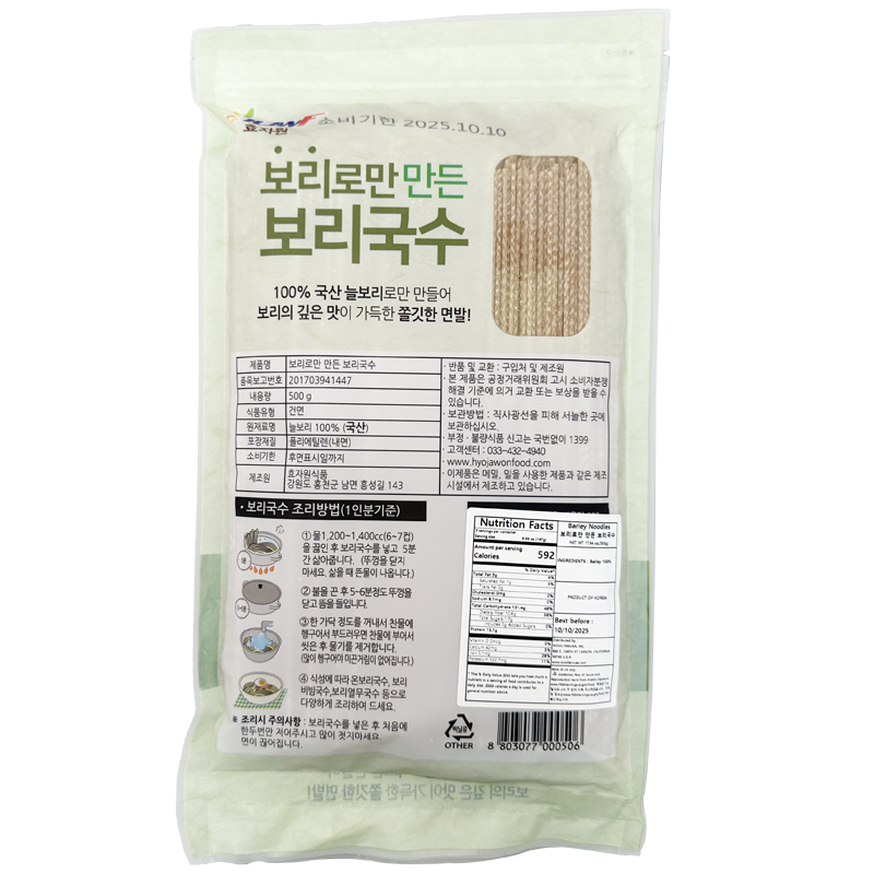 [Hyojawon] Barley noodles made only with barley 500g